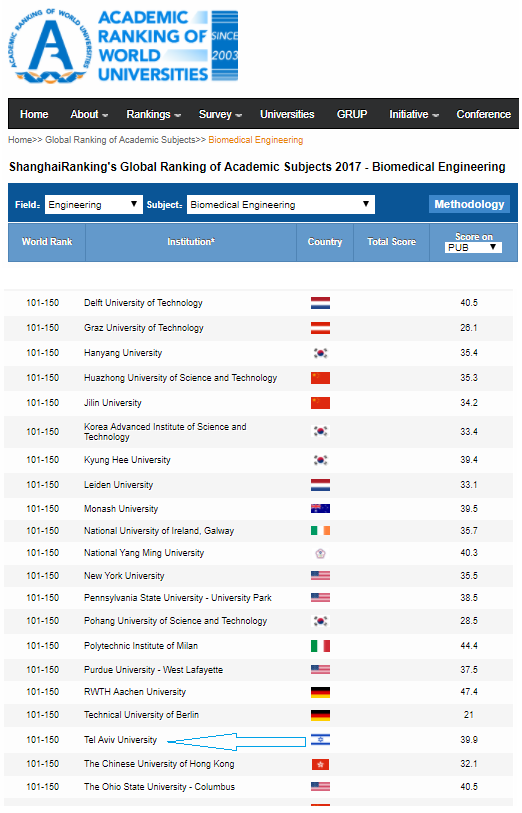 המחלקה להנדסה ביו-רפואית מדורגת במקום הגבוה ביותר בארץ עפ"י דירוג שנחאי!